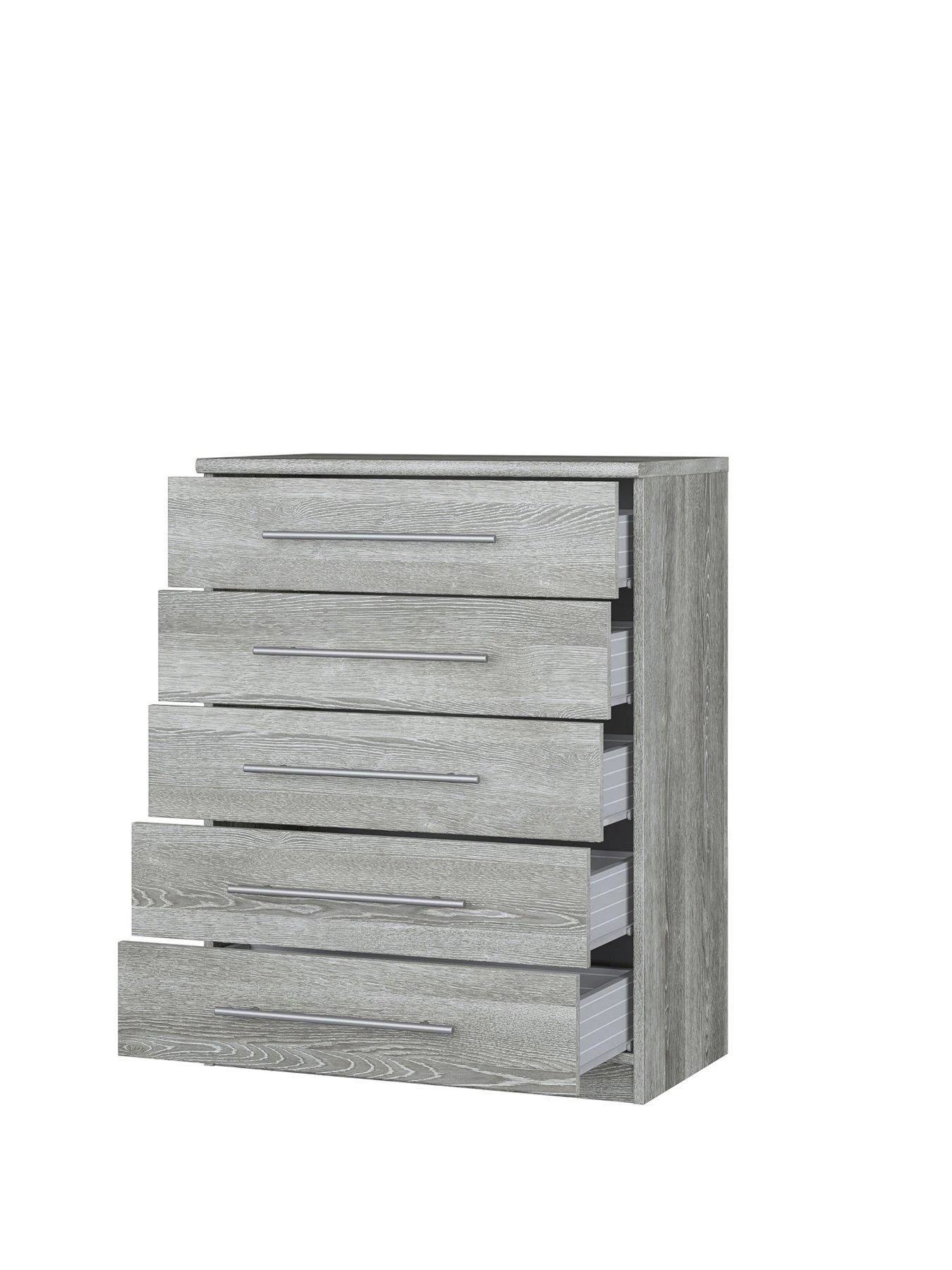 With an updated wood-effect finish that provides even more clarity and grain detail, this chest of drawers takes the Prague bedroom furniture range to even more stylish heights.