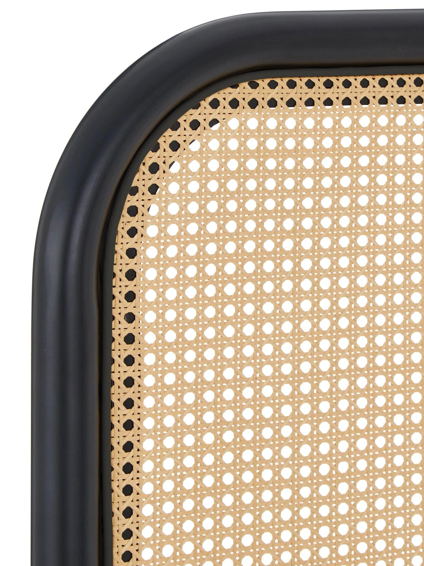 A striking alternative to regular headboards, this one features a black metal frame with smooth curved corners. This borders a panel of plastic cane fretwork that gives your sleep space an airy atmos and is finished in a lighter shade to contrast the frame. Choose double or king size to suit your bed.