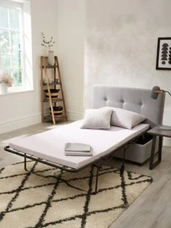 Ideal for having at the ready during Christmas, New Year’s or any other time you’re likely to have guests stopping over, its light grey shade and buttoned detail to the seat give it a modern appearance.