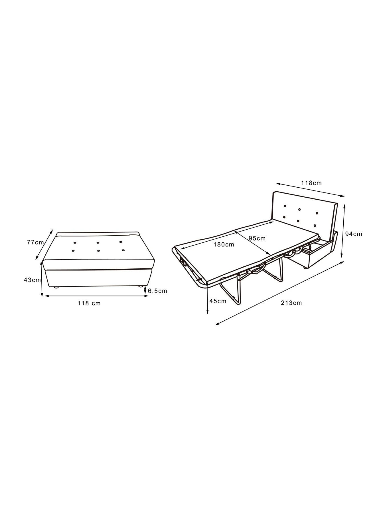 As bed – Height 94, Width 118, Length 213 cm (sleeping area – Height 45, Width 95, Length 180 cm)