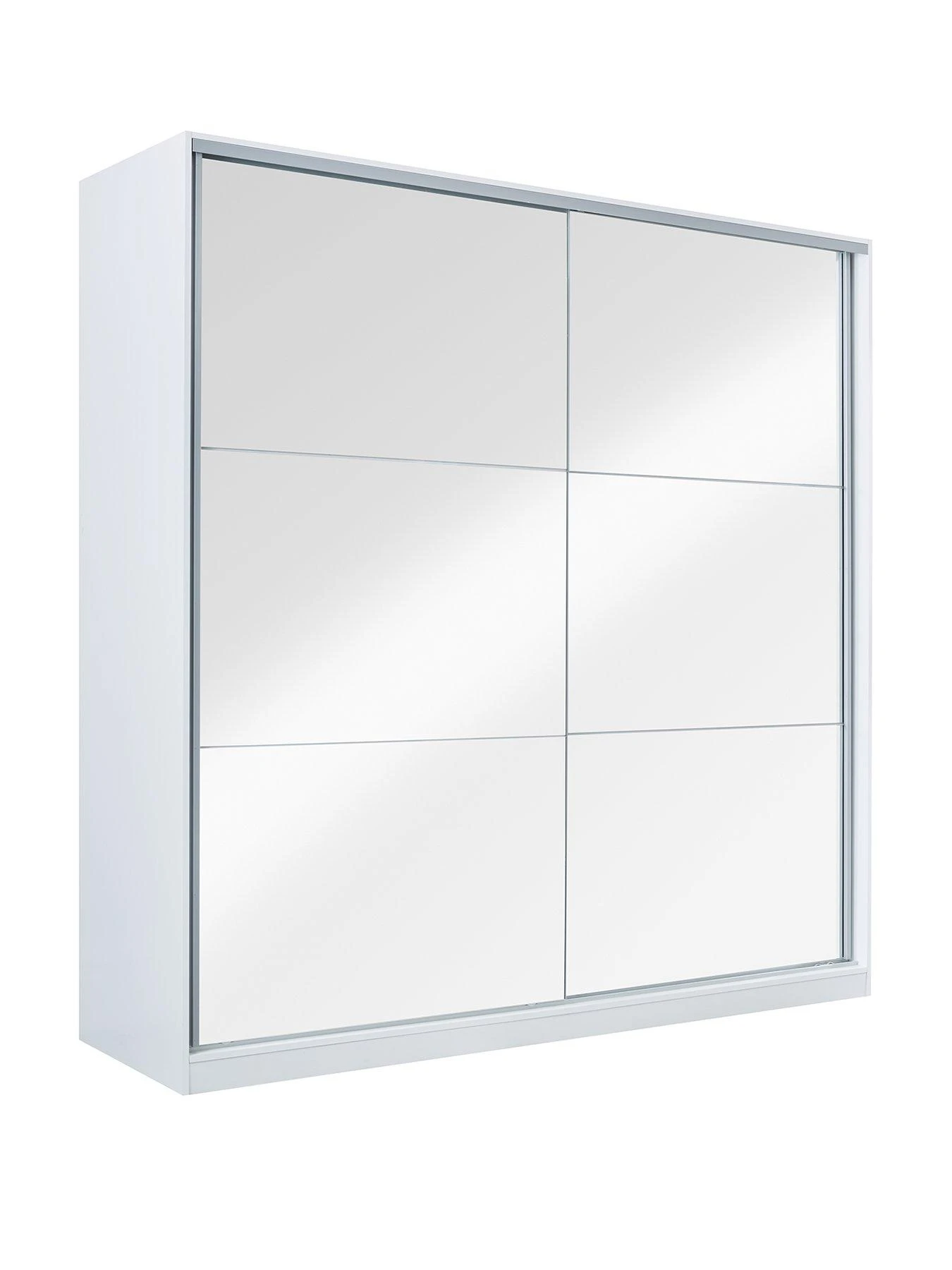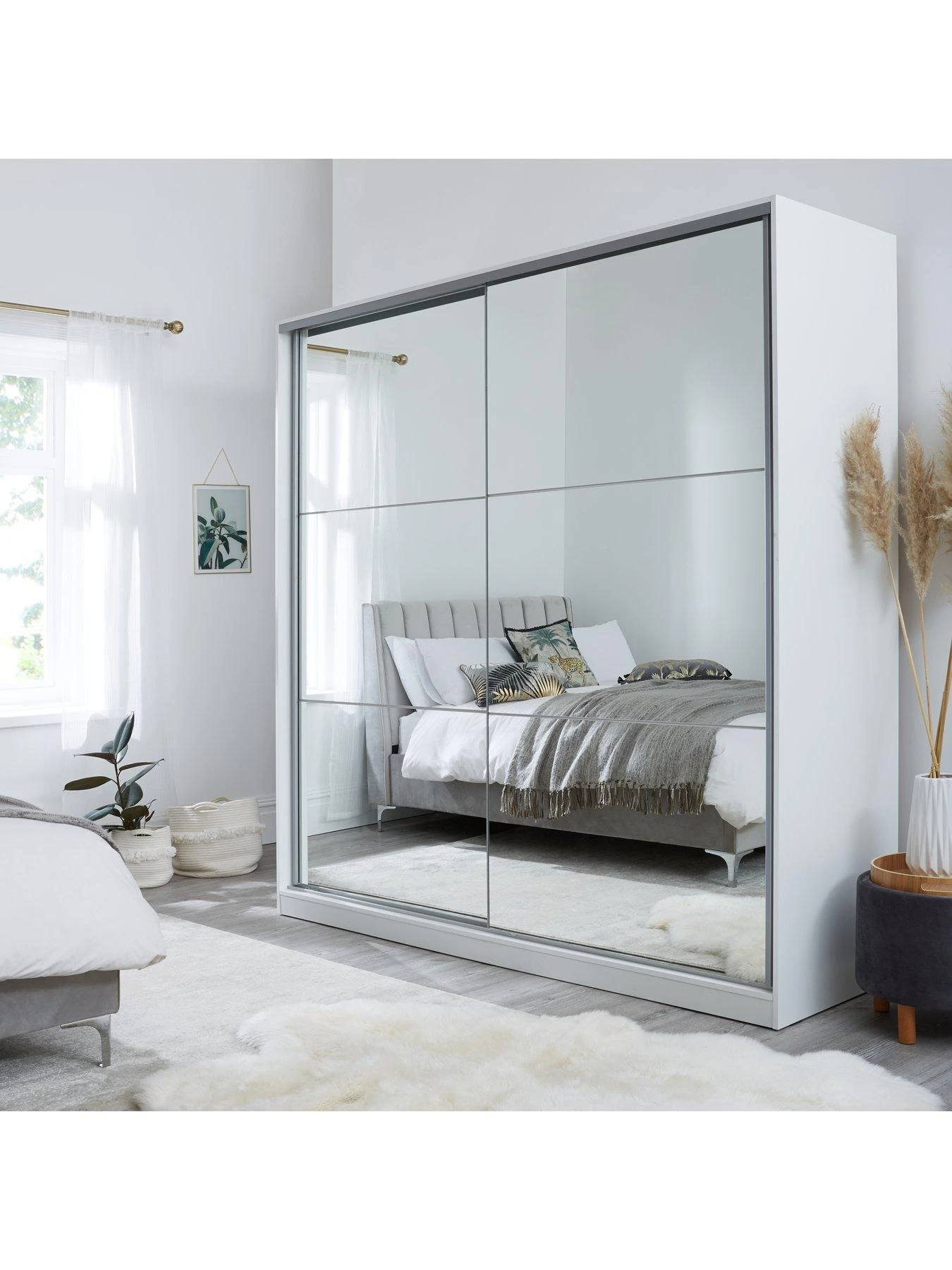 Each door is mirrored to splash your space with extra light and depth, while the frame comes in a contemporary choice of black or white.