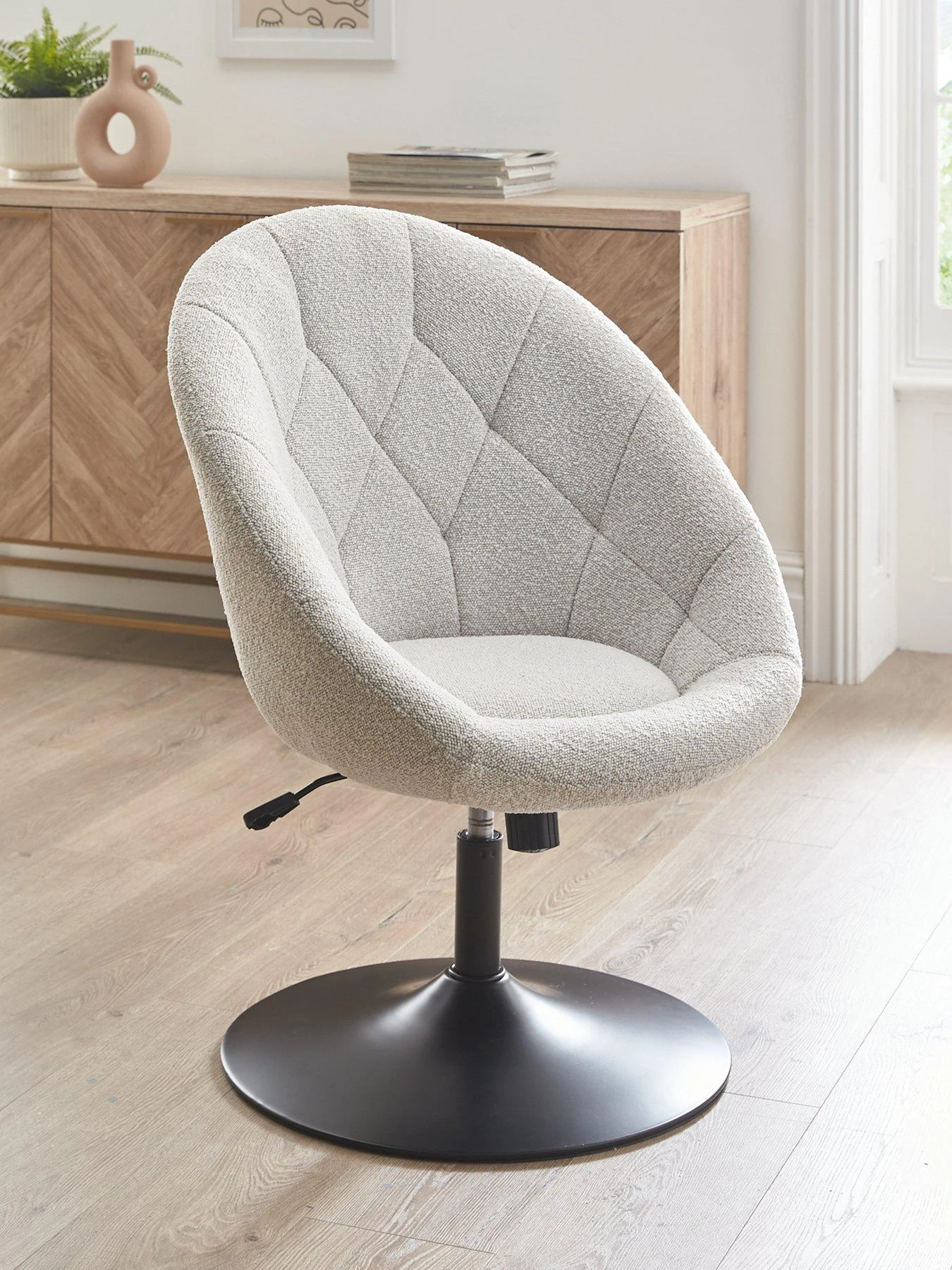 A cream colourway will sit smartly in a range of decors, and it’s detailed with a diamond stitched pattern and a large black base. The gas-lift mechanism allows you to adjust the height to a maximum of 98 cm.