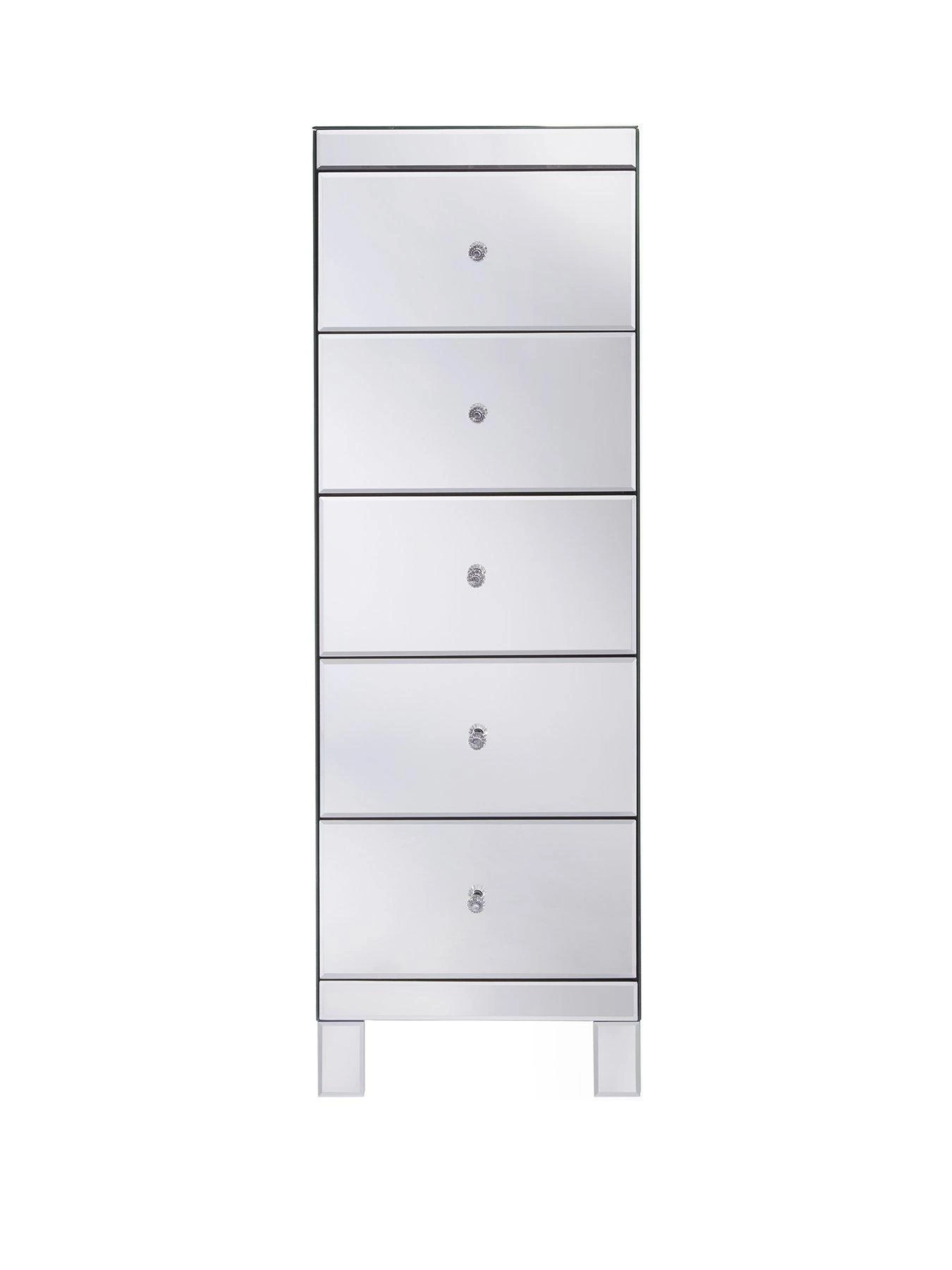 Parisian Ready Assembled Mirrored Tall Chest of 5 Drawers