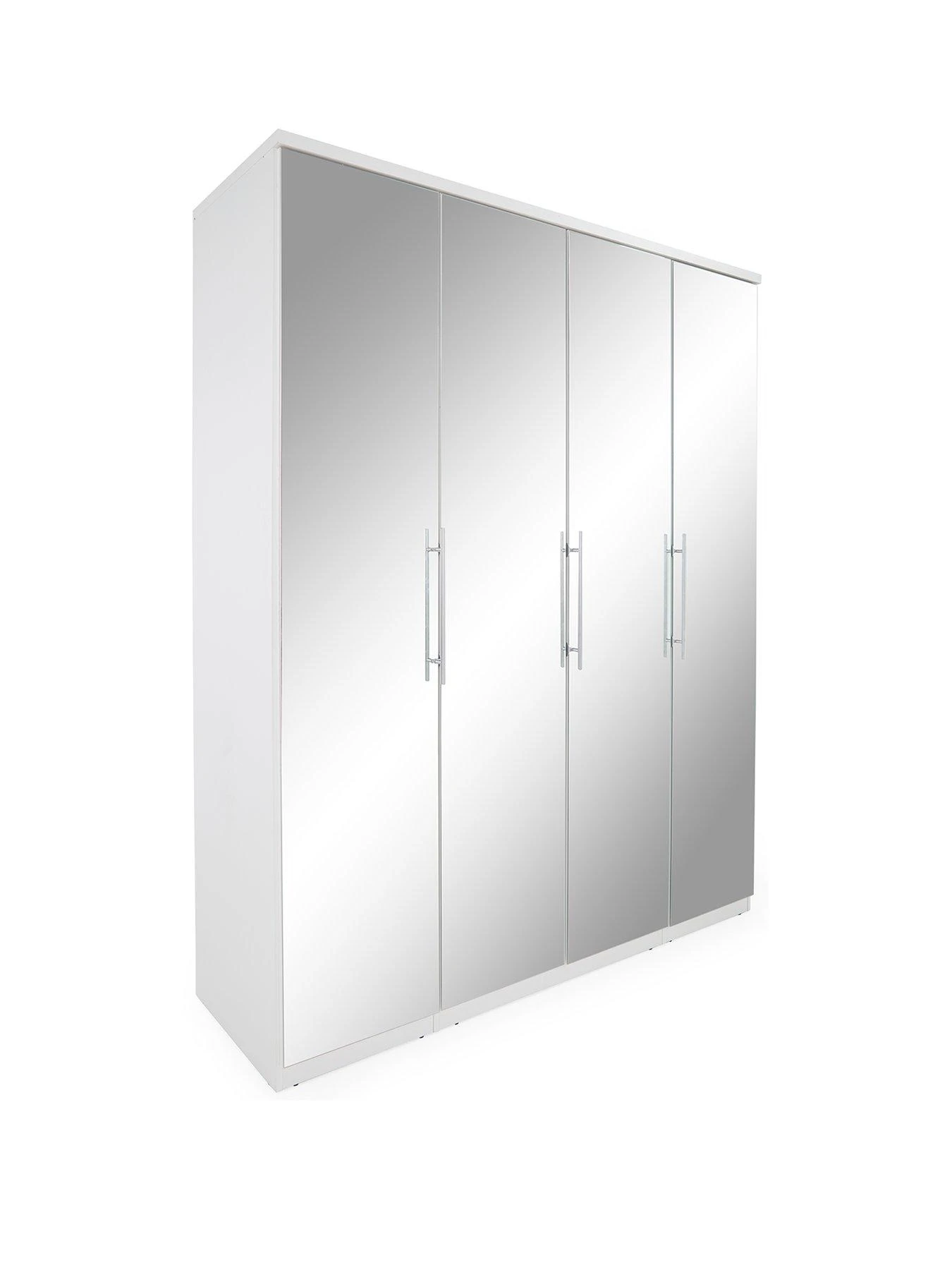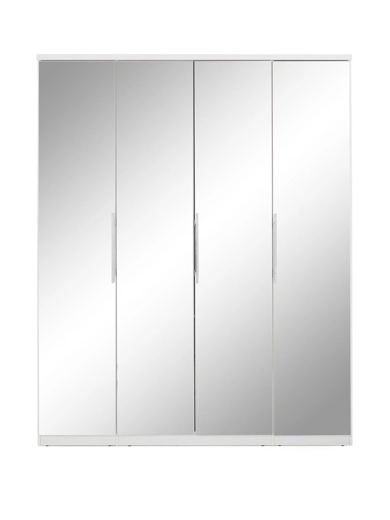 Prague 4-door Wardrobe with Mirrored Doors and Internal Chest of 3 Drawers – FSC® Certified