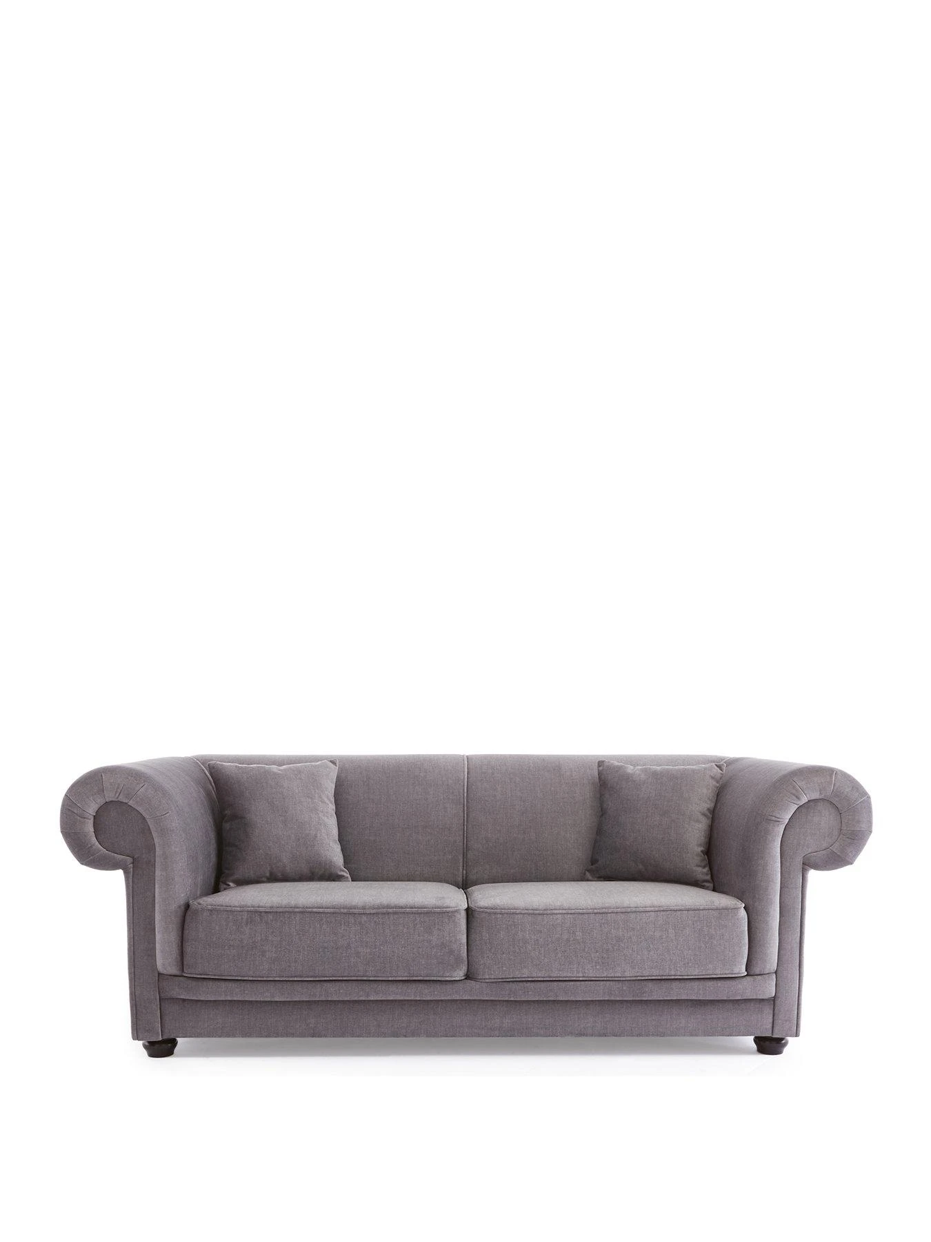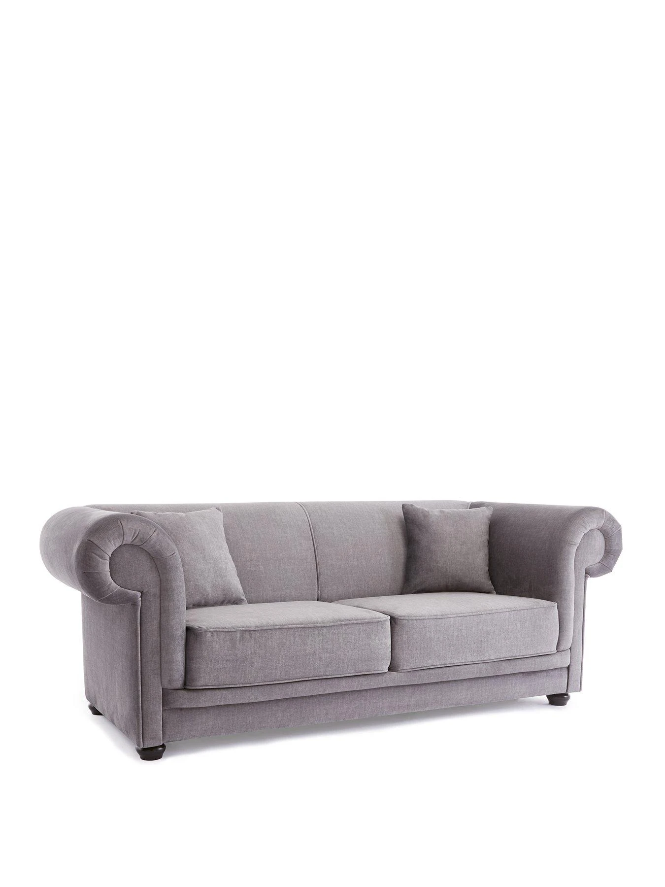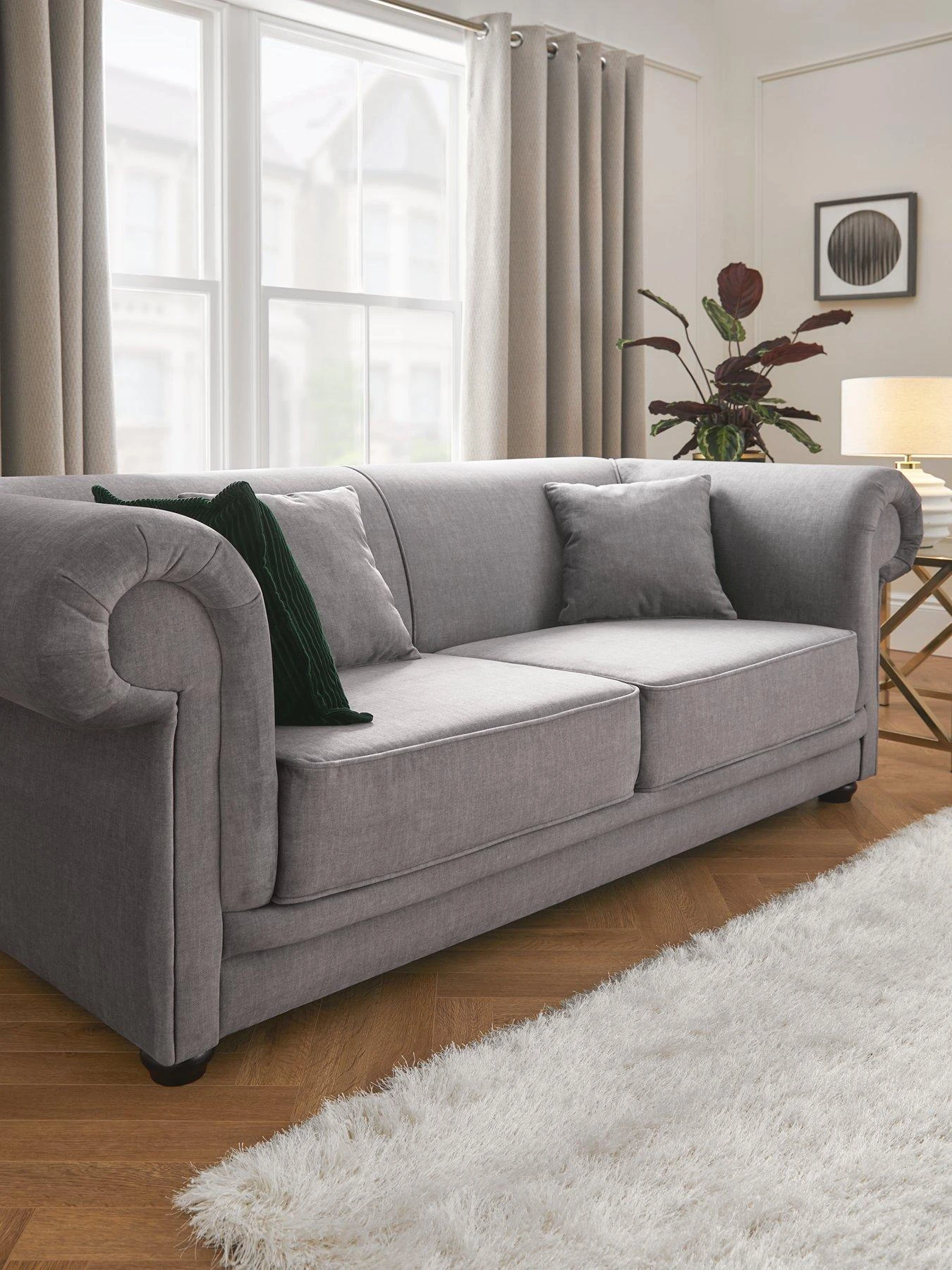 Taking its style inspiration from the classic Chesterfield sofas, the Salvador by Very Home is upholstered in a sumptuously napped fabric and flaunts iconic rolled arms that frame the furniture brilliantly. Detailed with a pair of accent cushions, it comes in a neutral grey shade that will match all living room colour schemes.