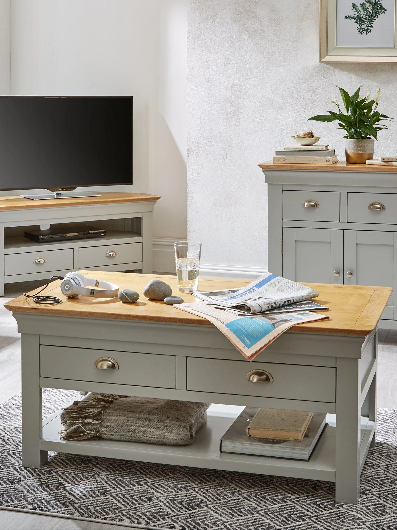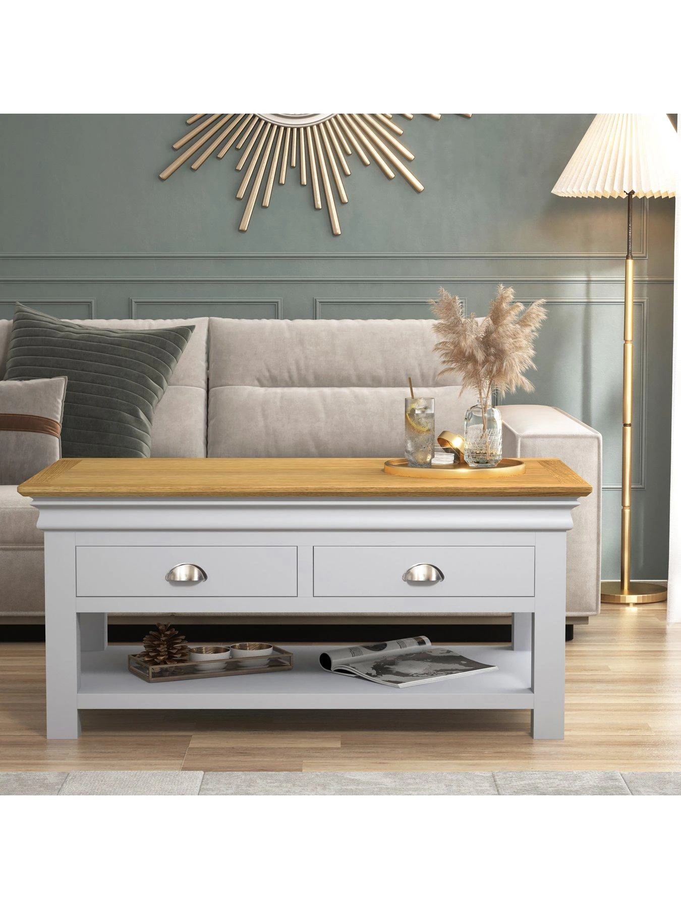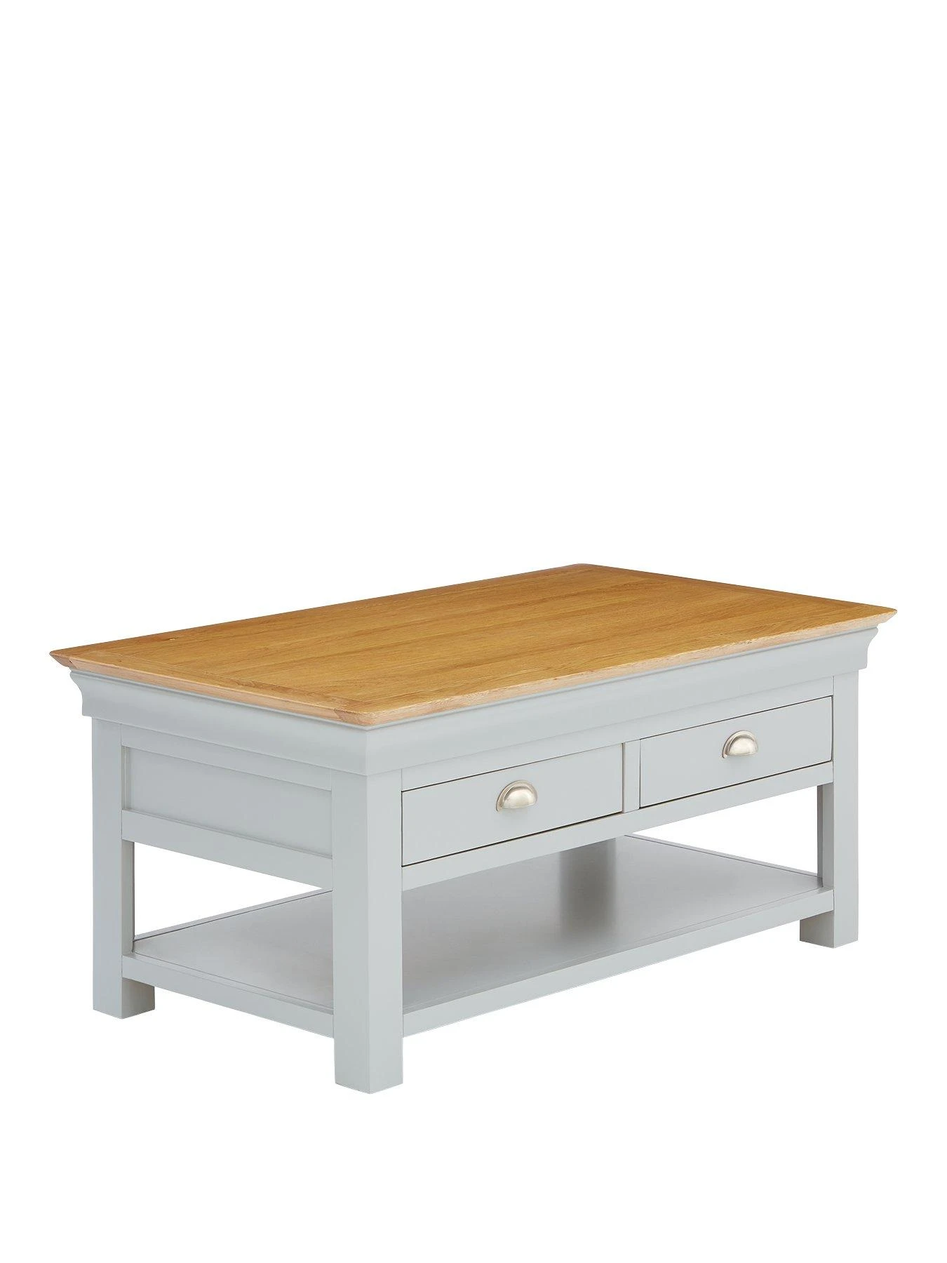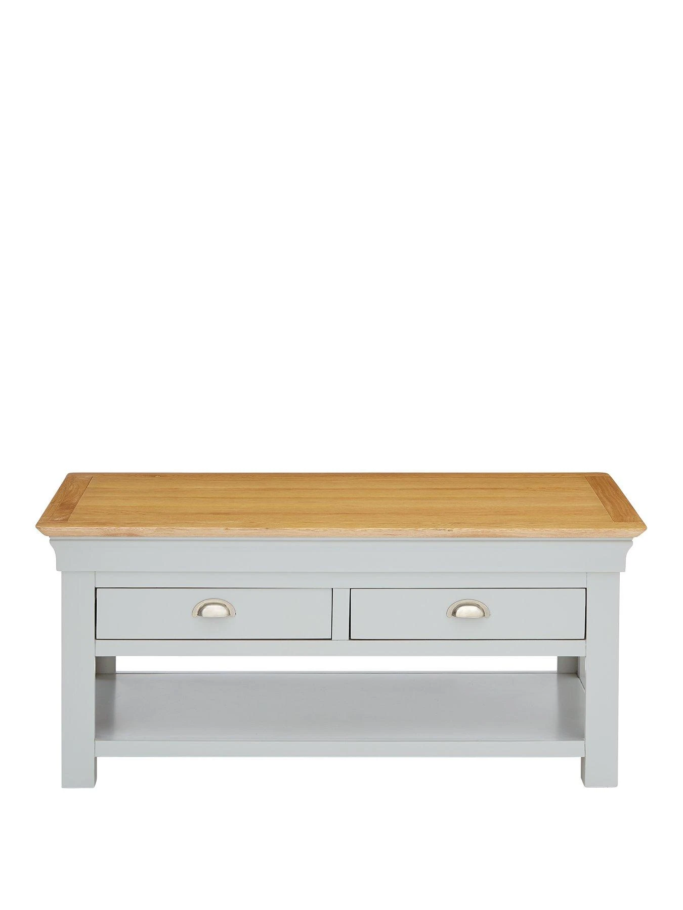 Seattle Ready Assembled 2 Drawer Storage Coffee Table in Painted Grey and Oak Veneers
