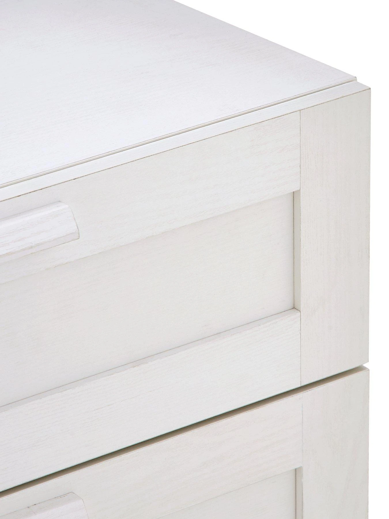 This bedside chest has been finished in a fresh white shade which bathes their bedroom in brightness. Two drawers are framed and accented with angular handles for a modern appearance, while easy-glide runners ensure they’ll open smoothly even when full.