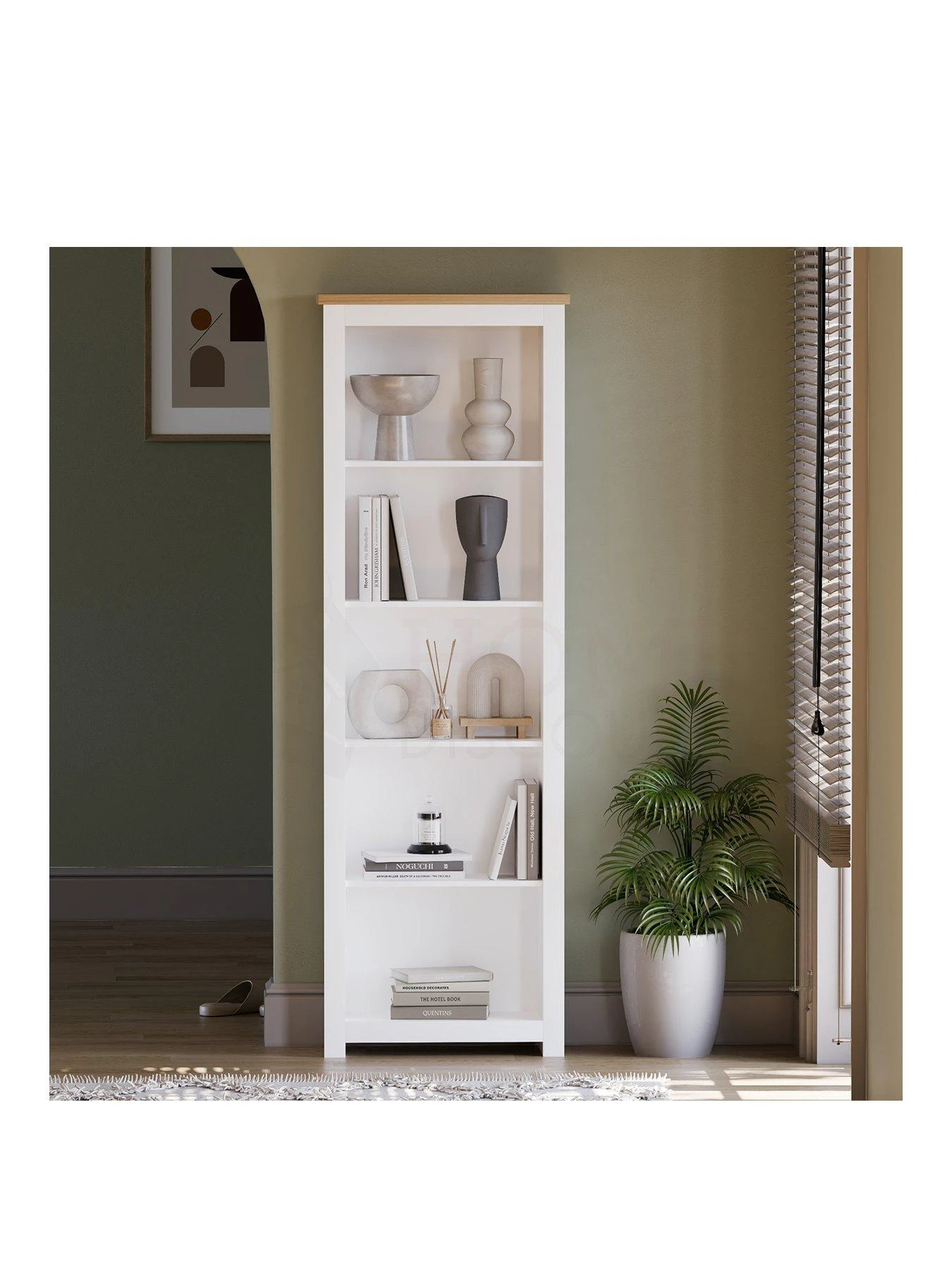 Styled with chunky sides for a substantial look, five shelves provide a smart display area for novels, ornaments, family photos and more.