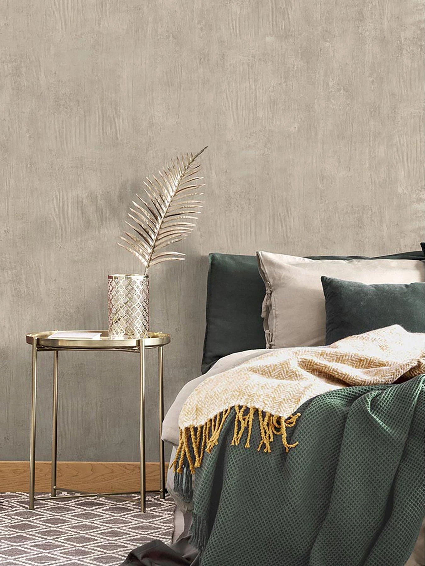 In a neutral stone colourway, the heavyweight Italian vinyl looks fantastic hanging all around the room, however it also works incredibly well when coordinated with bolder feature designs. Added durability makes this wallpaper ideal for high-traffic areas, so it’s a fantastic addition to family homes.