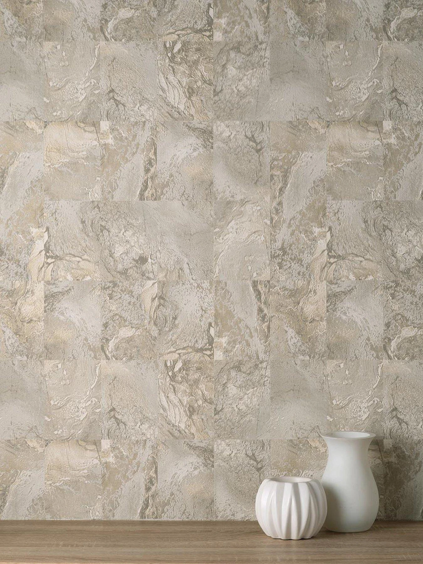 Taking inspiration from the swirling beauty of natural marble, the Savona Marble Tile wallpaper by Vymura will bring a calming feel to contemporary room settings.